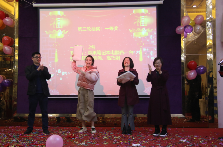 更劲爆的来了!为了让大家尽兴而归,在晚会上,昂佳集团还设立了抽奖环节,奖品也是十分丰厚,伴随着三等奖、二等奖、一等奖、特等奖的抽出也是不断掀起了年会的高潮。